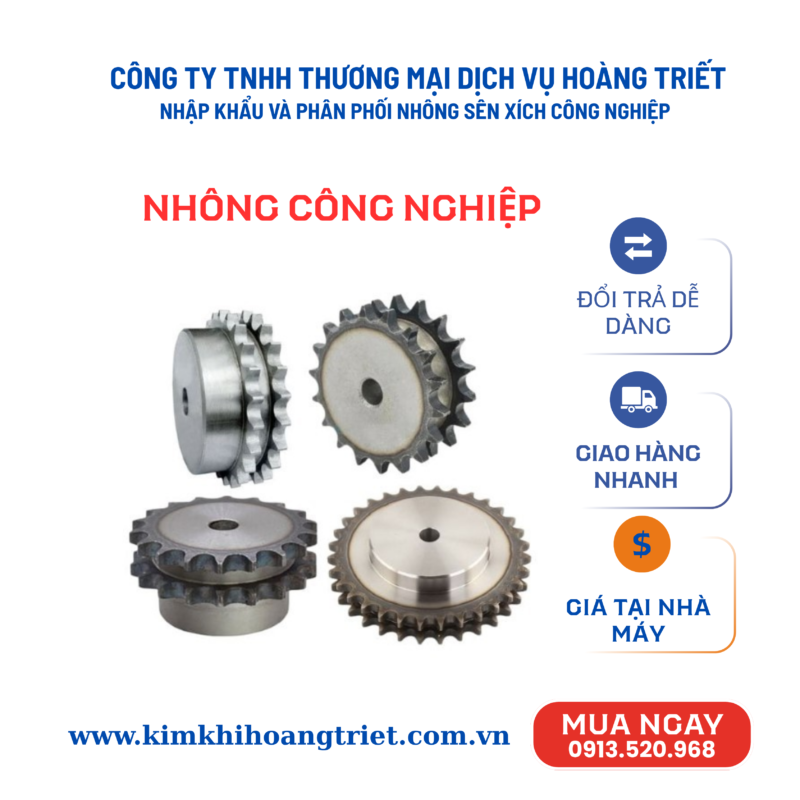 Tại Công ty TNHH Thương Mại Dịch Vụ Hoàng Triết, chúng tôi chuyên nhập khẩu – phân phối nhông sên xích với đa dạng chủng loại, đầy đủ kích thước, đáp ứng mọi nhu cầu sản xuất.