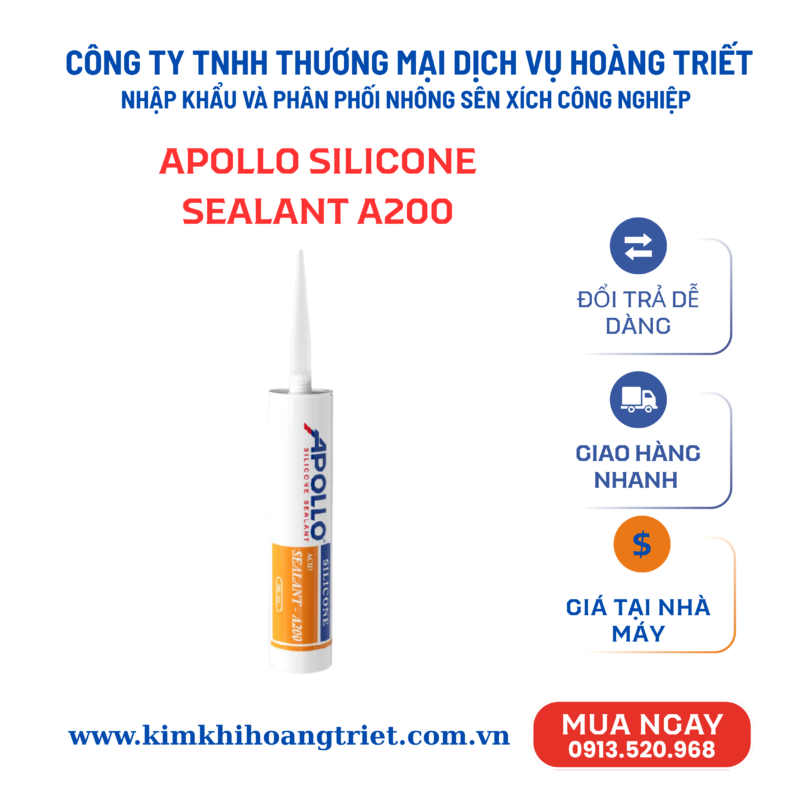 Apollo Silicone Sealant A200 là chất trám silicone một thành phần lưu hóa axit, độ đàn hồi cao và có khả năng chống chọi với mọi điều kiện thời tiết. Apollo A200 đặc biệt thích hợp cho các bể cá nhỏ bằng kính.
